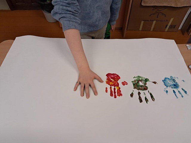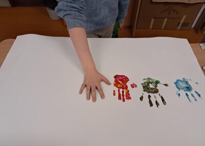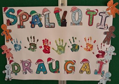 Tikslinei pradinių klasių mokinių grupelei vyko socialinės–edukacinės veiklos „Spalvoti draugai“, skirtos emocijų pažinimui ir bendrystei stiprinti. Veiklų metu vaikams buvo skaitoma pasaka „Spalvotų draugų miestas“ – apie vietą, kur kiekvienas yra skirtingas, turintis savitą, ypatingą spalvą, tačiau tik būdami kartu sukuriame gražiausią vaivorykštę. Įkvėpti pasakos, vaikai spalvino „žmogeliukus“ tomis spalvomis, kurios atspindi jų savijautą, emocijas ir tai, kaip jie mato save. Taip pat kūrė spalvotų delniukų koliažą – bendrą darbą, simbolizuojantį draugystę, priėmimą ir tai, kad visi esame skirtingi , bet galime būti kartu.