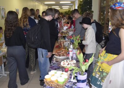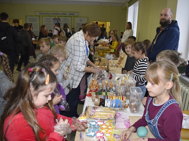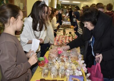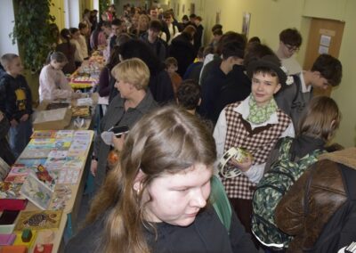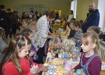 Mugės metu gimnazijos erdvės prisipildė spalvų, kvapų ir linksmo šurmulio. Mokiniai prekiavo savo gamintais kepiniais, saldumynais, rankdarbiais bei kitais dirbiniais. Prekeiviai viliojo pirkėjus kūrybingomis reklamomis, kvietė ragauti, derėtis ir išsirinkti ką nors gražaus ar gardaus.