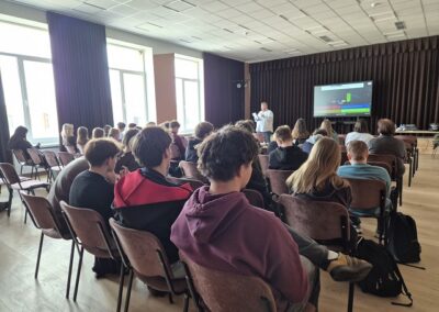 Renginio metu Vilniaus universiteto lektoriai įdomiai ir interaktyviai pristatė universitetą bei studijų programas. Naudodami „Kahoot“ programėlę, jie įtraukė mokinius į aktyvias veiklas, skatino dalyvauti ir domėtis studijų galimybėmis.