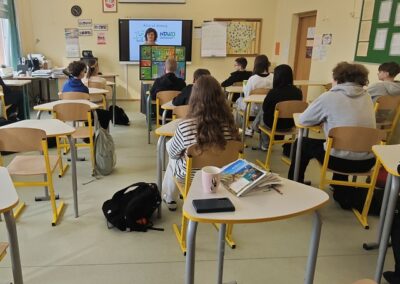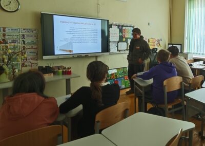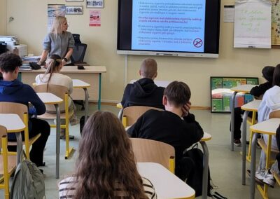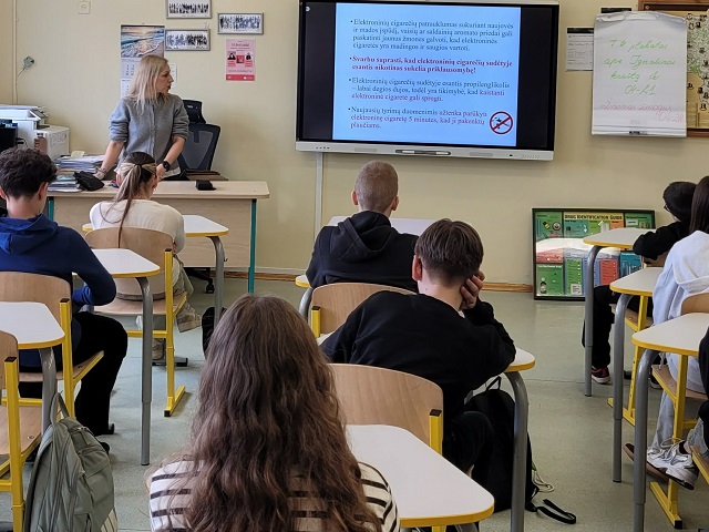 Paskaitos metu mokiniams buvo pateikta svarbi informacija apie psichoaktyvių medžiagų, ypač elektroninių cigarečių, sudėtį ir jų daromą žalą žmogaus organizmui. Specialistė ne tik aptarė galimas pasekmes sveikatai, bet ir skatino mokinius kritiškai vertinti aplinkos įtaką bei reklamos poveikį.