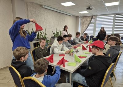 Tuo pačiu metu trečioji aštuntokų grupė lankėsi Zarasų profesinėje mokykloje. Čia gimnazistai su siūlomomis profesijomis susipažino interaktyviai – išbandė dronų valdymą, virtualius skrydžius, masažo pagrindus, mokėsi kurti puokštes ir sodinti augalus. Mokiniai turėjo galimybę išbandyti ir stalo serviravimą, pabūti barmenais bei dekoruoti sausainius. Džiugu, kad pristatytos profesijos sudomino visus – tiek merginas, tiek vaikinus, paneigiant stereotipus apie „vyriškas“ ar „moteriškas“ specialybes.